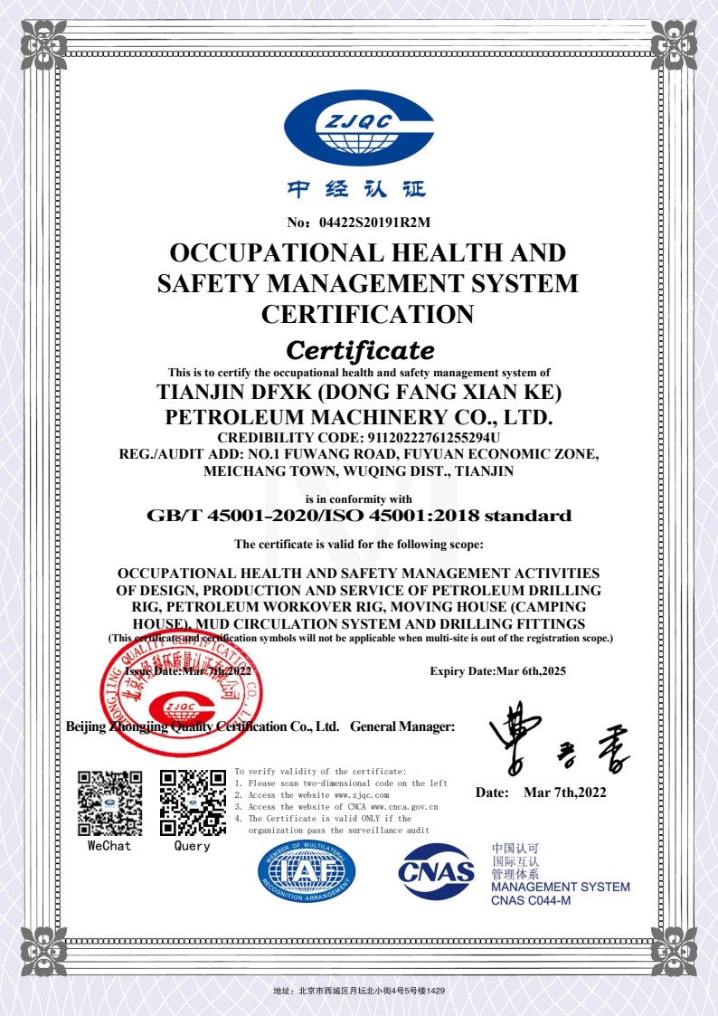 職業(yè)健康安全管理體系認(rèn)證證書英文