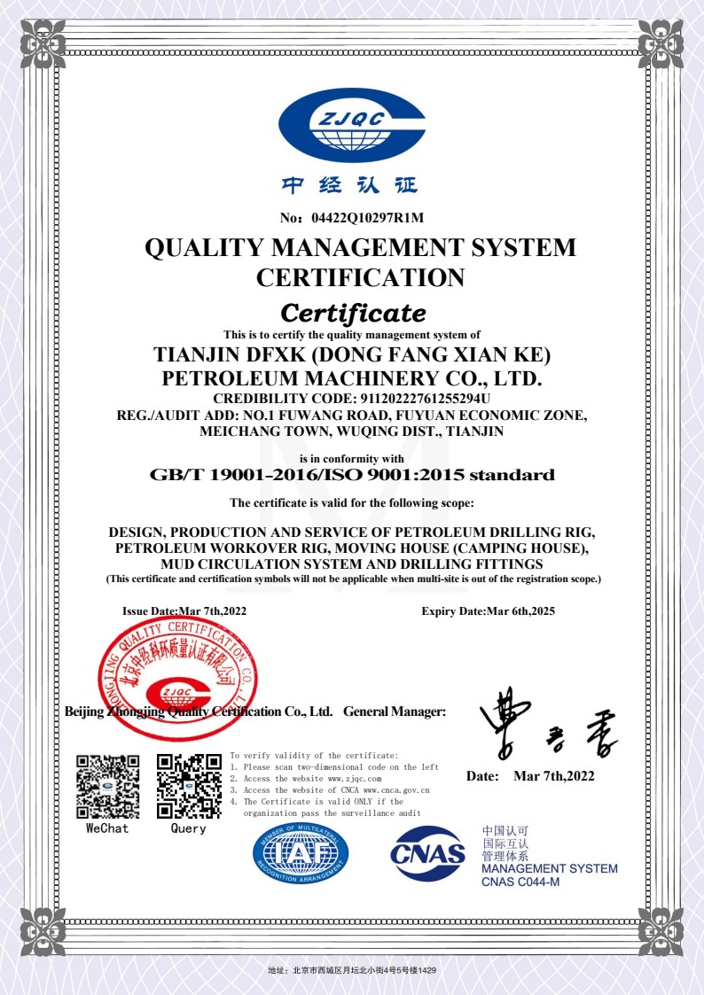 質(zhì)量管理體系認(rèn)證證書英文