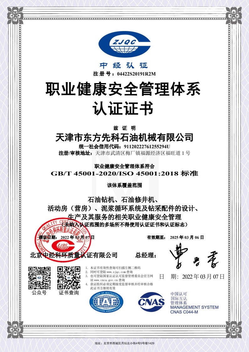 職業(yè)健康安全管理體系認(rèn)證證書
