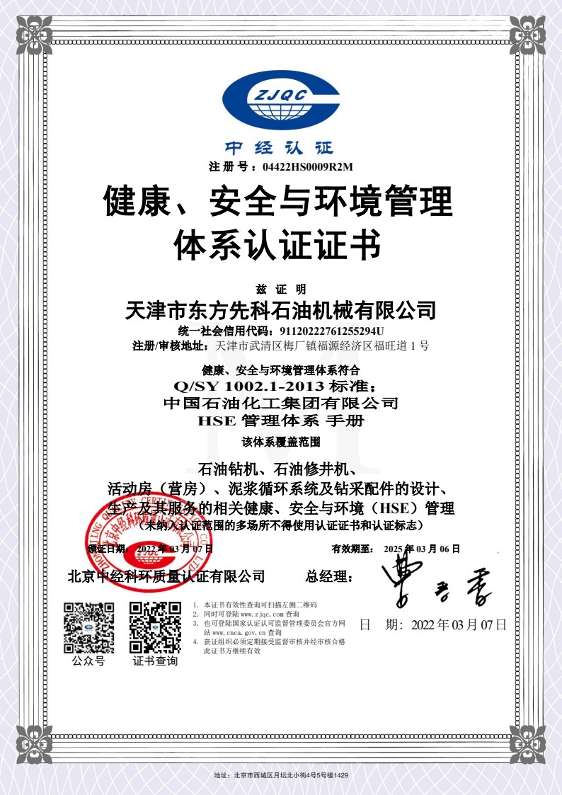 健康、安全與環(huán)境管理體系認(rèn)證證書